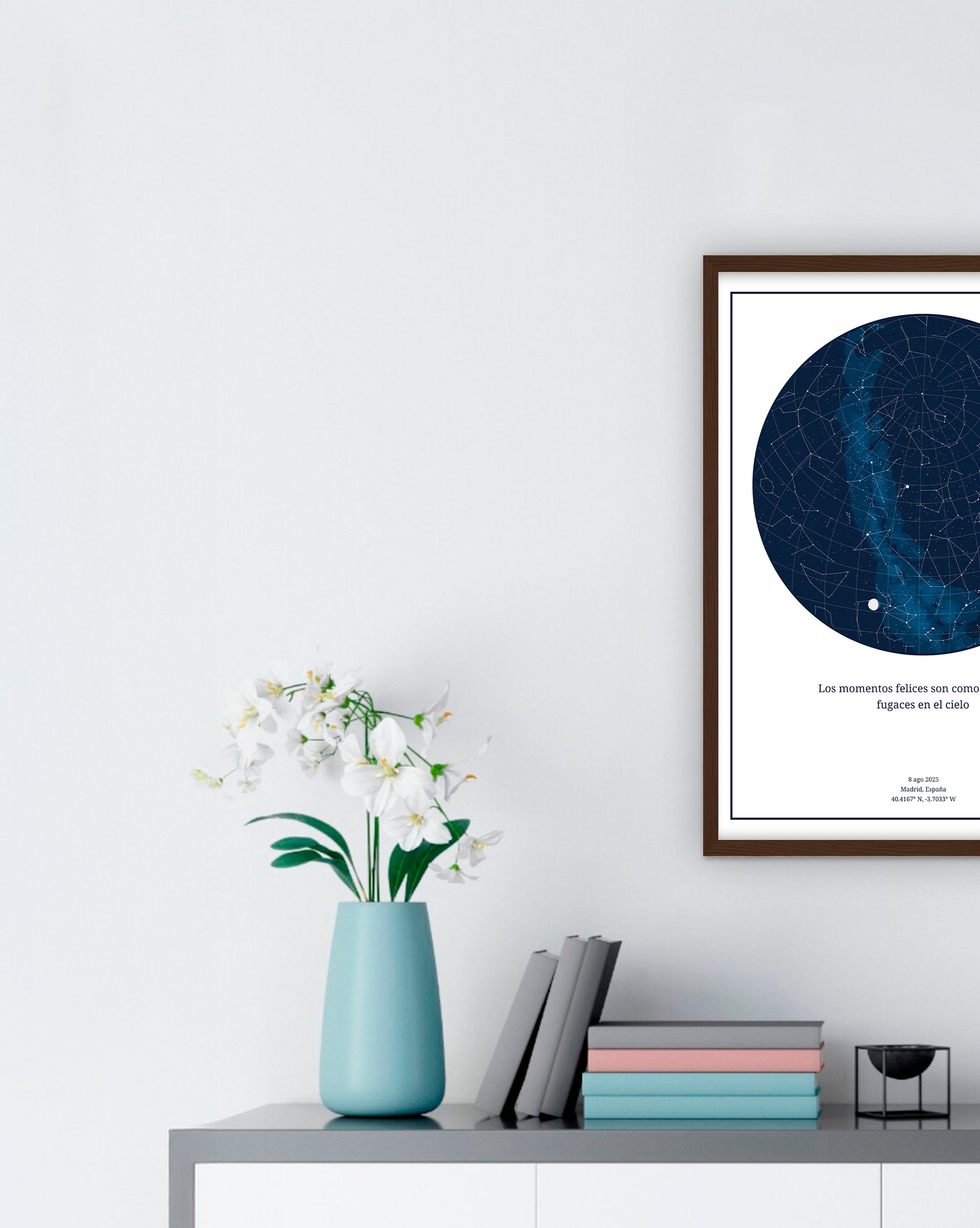 Personaliza una impresión única de mapa estelar eligiendo tu diseño y color preferidos. Mejórala aún más añadiendo texto personalizado para conmemorar un momento importante. Crea una impresión de cielo nocturno a tu medida con tu toque personal.